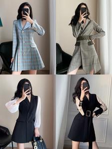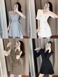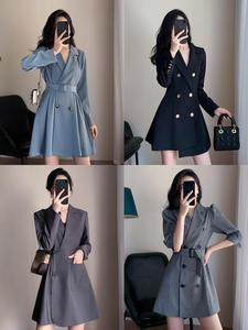 2025年新款收腰双排扣西装连衣裙女春秋法式气质女神范显瘦设计感