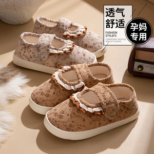 月子鞋春秋款包跟拖鞋软底 防滑舒适透气910月产后孕妇蝴蝶结居家