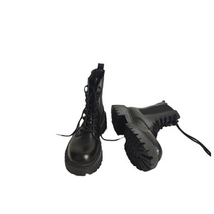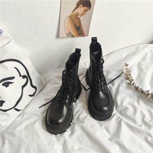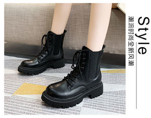 英伦风女鞋秋冬棉鞋中帮新款马丁靴加绒百搭圆头中筒靴女厚底单鞋