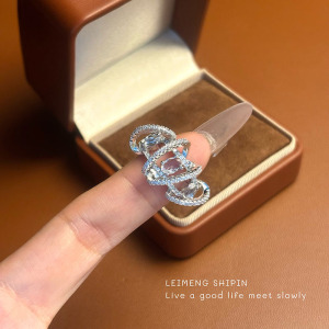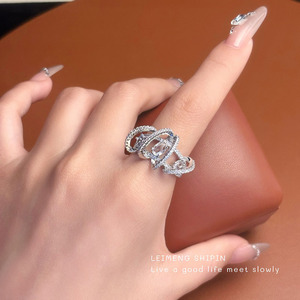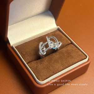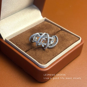时尚新款环绕锆石戒指女欧美轻奢风高级感指环小众交叉细闪食指戒