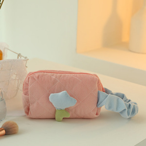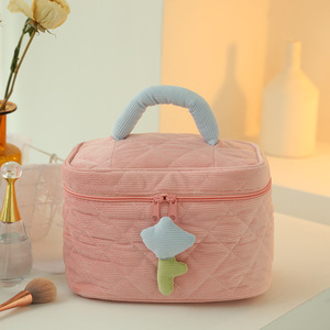 奶油灯芯绒化妆包大容量女收纳包高级感可爱化妆旅行便携化妆包包
