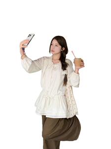 边v领抽绳长袖防晒衬衫女2025夏日出游穿搭法式气质收腰绝美上衣