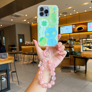 手机挂绳吊坠炫彩蝴蝶结串珠手链挂件创意挂饰通用手机壳防丢吊绳