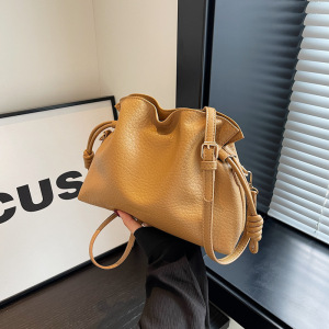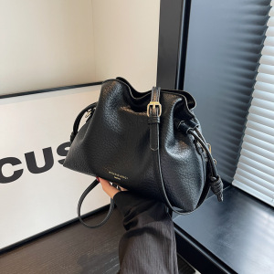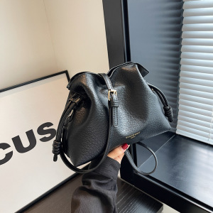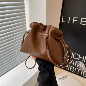 跨境复古高级质感水桶包女秋冬新款褶皱设计通勤百搭单肩斜挎包包