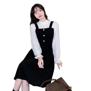 大码女胖mm2025春秋新款甜美遮肉显瘦大码长袖假两件连衣裙