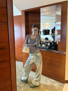 SUNONEOE 浅色水洗渐变牛仔裤女夏新款低腰宽松慵懒阔腿休闲裤子