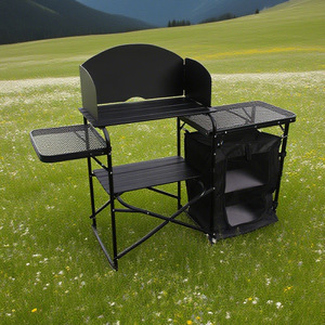 工厂直销户外多功能移动厨房露营野炊派对铝合金折叠餐台带储物柜