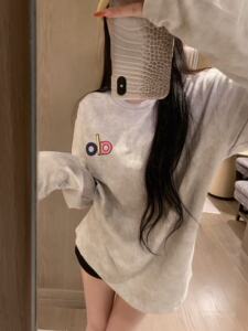新款alo彩色字母印花长袖T恤宽松百搭时尚水洗炒色扎染舒适上衣