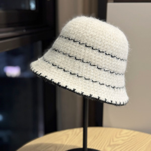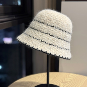 韩版秋冬季渔夫帽女新款百搭拼色显脸小针织盆帽素颜遮脸水桶帽潮