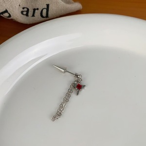 暗黑系红锆石翅膀链条耳骨钉耳钉女小众时尚精致耳轮钉耳饰饰品