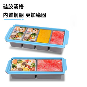亚马逊带盖冻汤硅胶大冰格火锅底料分装盒高汤冷冻储存盒冰块模具
