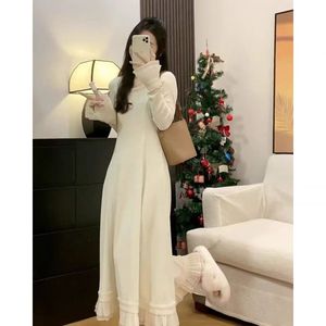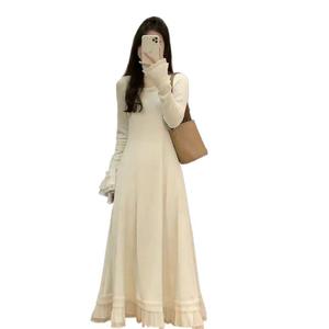 法式赫本风花边拼接针织长袖连衣裙女早秋款内搭收腰显瘦打底长裙