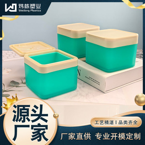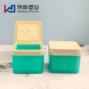 300ml方形翻盖PP棉片盒双层内胆带镊子卸妆盒棉片面膜翻盖设计