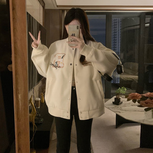 2025秋冬新款美式复古刺绣棒球服外套女宽松小众设计休闲立领夹克
