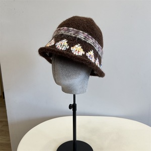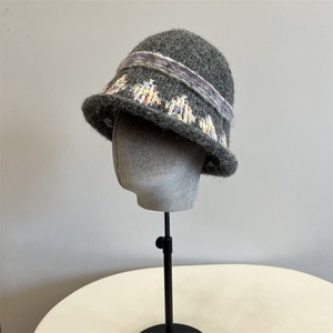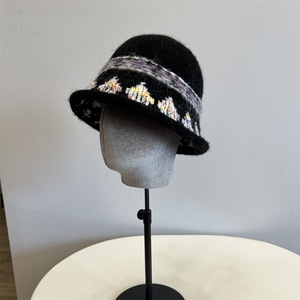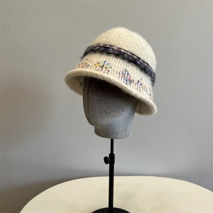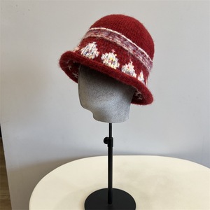 韩版学院风彩色提花针织渔夫帽女生秋冬奶油甜美风保暖卷边盆帽子