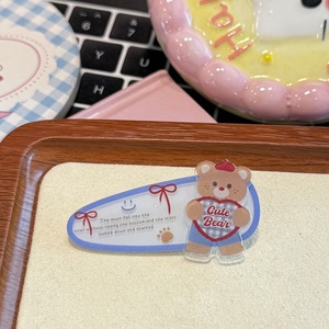 新款咖色小熊亚克力发夹套装黑色苹果猫咪刘海侧边夹卡通头饰女