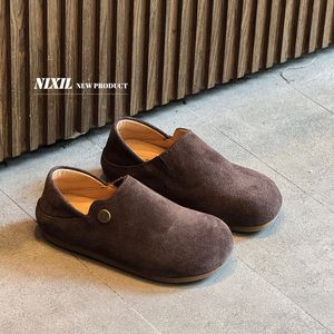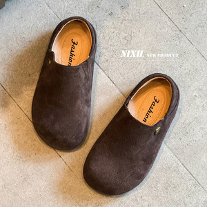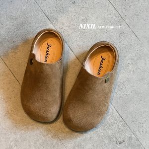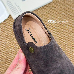 2025年秋季新款儿童韩版百搭磨砂真皮一脚蹬勃肯鞋