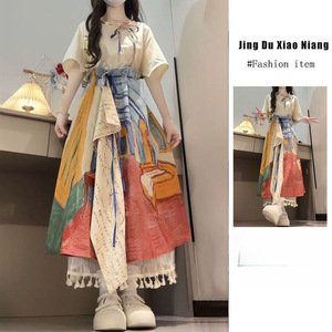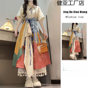 梵高油画风穿搭一整套不规则半身裙夏季新款搭配艺术感上衣女学生