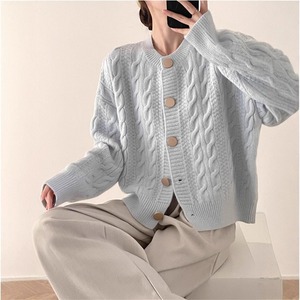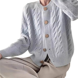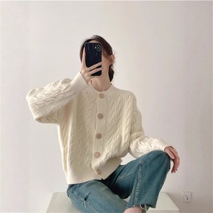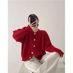 设计感针织开衫单排扣麻花长袖新款女装宽松毛衣外套秋冬百搭上衣