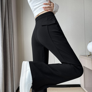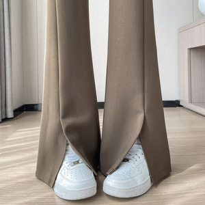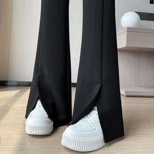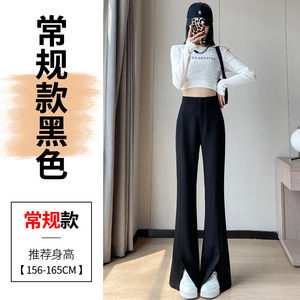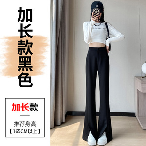梨型身材黑色开叉西装裤女秋冬大码胖mm高腰拖地阔腿裤休闲喇叭裤