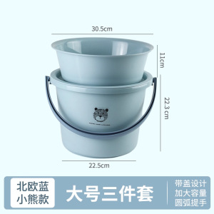 【加大号】小熊款蓝色三件套【桶+盆+盖】 品质加厚款
