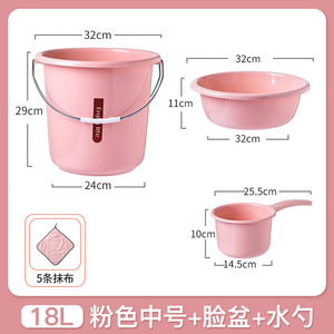 四件套加厚粉【18L水桶+脸盆+水勺+5条清洁抹布】
