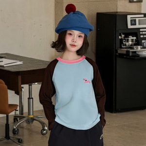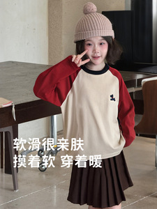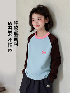 女童T恤2025春秋季新款儿童休闲长袖裸感打底衫A类全棉撞色亲子装