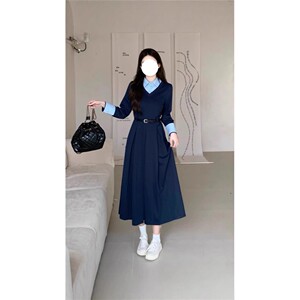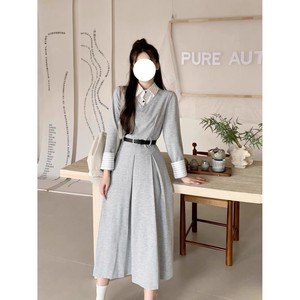 韩系高级感入秋穿搭连衣裙女秋冬装2025新款学院风假两件气质长裙