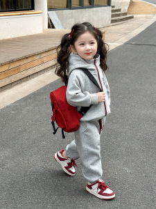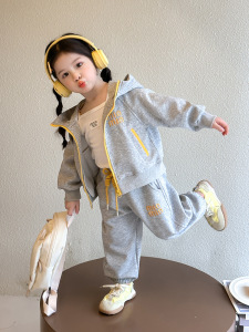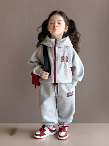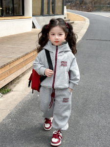 外贸男女童秋装连帽套装2025新款洋气绣花字母校园运动两件套童装