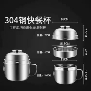 快餐杯304不锈钢大容量泡面碗食品级学生上班族打饭饭盒保温