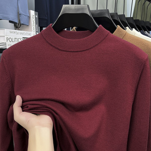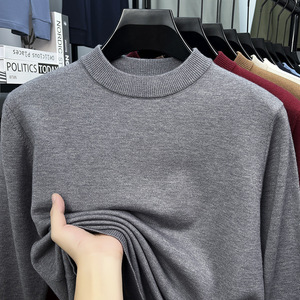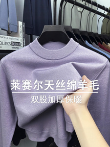 莱塞尔天丝绵羊毛衫男士冬季新款圆领休闲毛衣加厚保暖打底针织衫