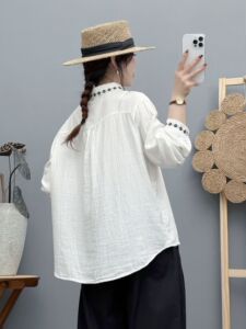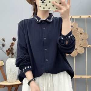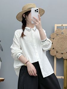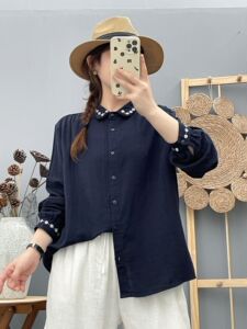 2025年秋装新款 纯棉双层棉纱衬衫女领子刺绣文艺范宽松显瘦衬衣