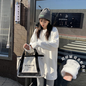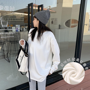 宋正恩白色长袖t恤女秋季洋气慵懒感基础内搭宽松体恤遮屁股上衣