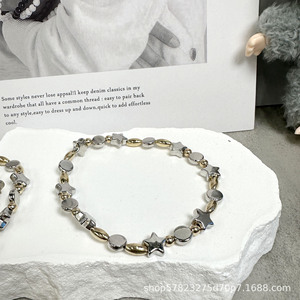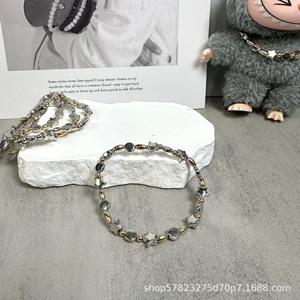 Labubu拉布布项链拼接圆形五角型手链项链网红手饰潮流手串竹制