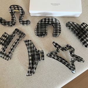格纹系列鲨鱼夹韩系简约高级感头饰发饰百搭气质后脑勺花朵盘发夹