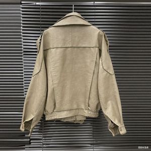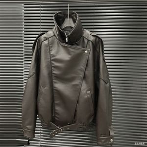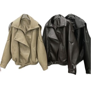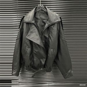 2025新款设计女装翻领皮衣外套女小众设计宽松复古休闲夹克上衣