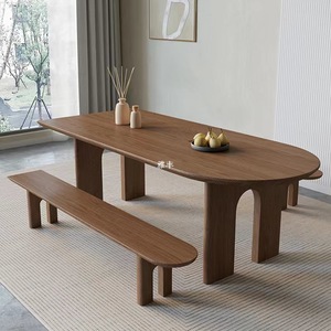 实木岛台餐桌一体异形长方形靠墙半圆弧椭圆形家用书桌餐桌椅组合