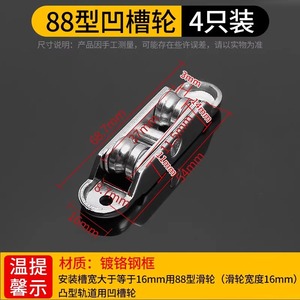宽16mm【四槽轮款】304不锈钢铜轮(2只装)