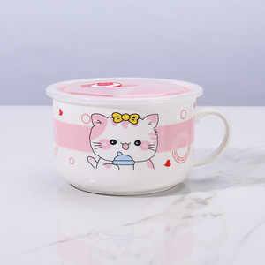 陶瓷保鲜碗带盖带手柄泡面碗冰箱微波炉饭盒学生水杯带把手早餐杯