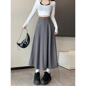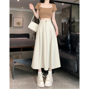 米白色西装面料半身裙女春夏百搭垂感休闲a字裙高腰显瘦中长裙子
