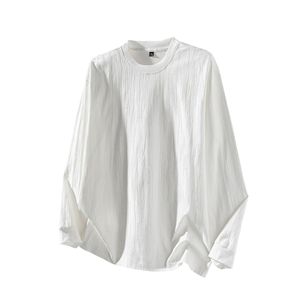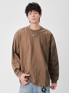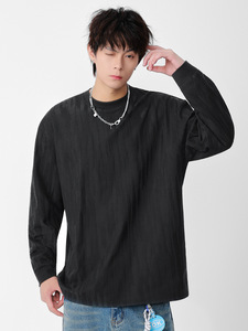 LKTM男装 秋季新款树皮纹提花肌理感长袖T恤男宽松圆领休闲打底衫