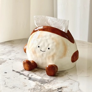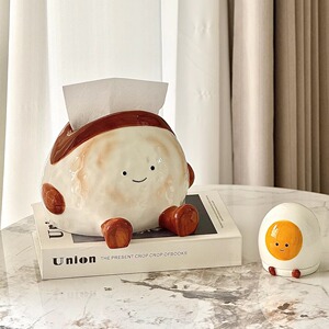 可爱肉夹馍纸巾盒新款客厅桌面陶瓷抽纸盒家用高端摆件创意餐纸盒