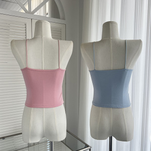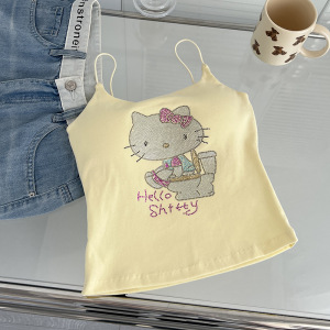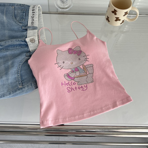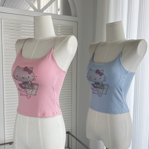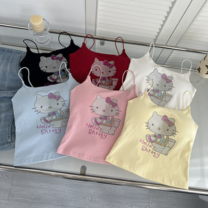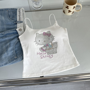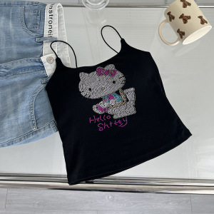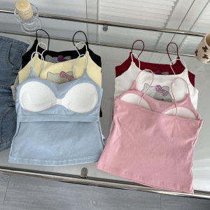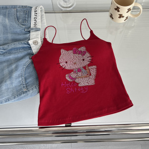 辣妹猫咪烫钻小众美背吊带背心女夏季带胸垫内搭外穿无袖打底上衣