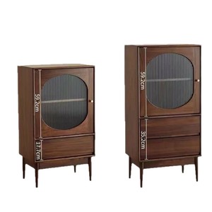 【矮柜】-60*40*105(高级橡胶木胡桃色款) 金属滑轨