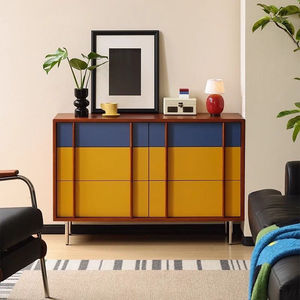 中古风实木拼色六斗四斗抽屉客厅收纳包豪斯储物柜撞色卧室柜子