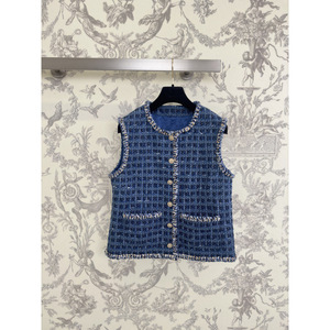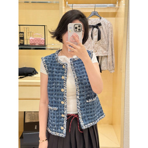 深圳南油货~25秋冬新品王一博同款法式名媛小香风格纹马甲外套女