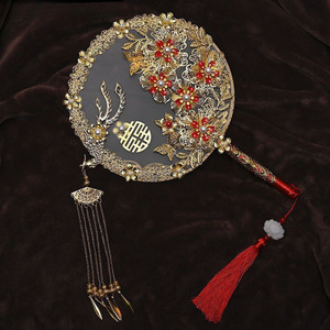 中式婚礼明制婚服新娘遮面手捧花汉服团扇秀禾服出嫁遮面喜扇成品