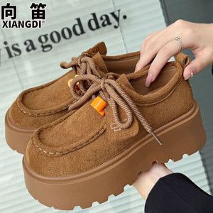 真皮全包勃肯鞋子女厚底增高乐福鞋2025秋季新款休闲单鞋袋鼠鞋