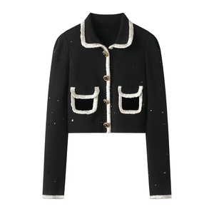现货2025秋季新款赵美延同款撞色翻领短款针织开衫女LF25Q01ZM076