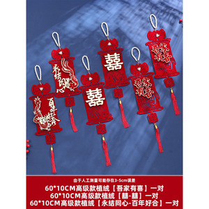 结婚喜字挂饰植绒门把手挂件婚房布置新房客厅卧室仪式感婚礼装饰